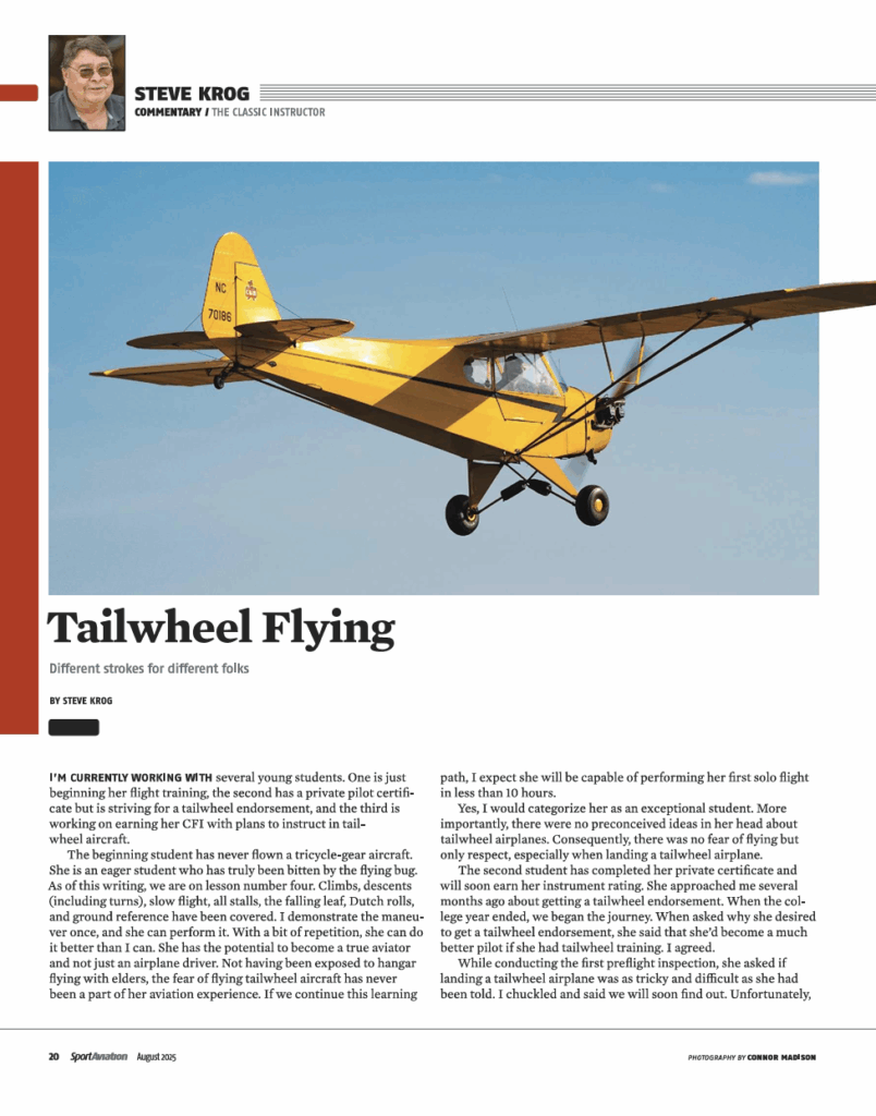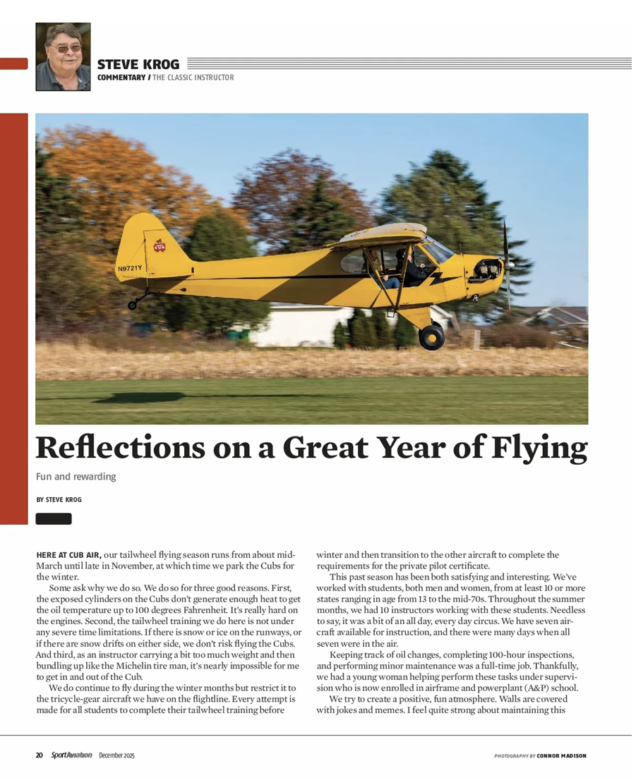 A journey in Flight Articles Written By Steve Krog Sport Aviation 2026 Sport Aviation 2025 Sport Aviation 2024 Sport Aviation 2023 Sport Aviation 2022 Sport Aviation 2021 Sport Aviation 2020 Sport Aviation 2019 Sport Aviation 2018 Sport Aviation 2017 Sport Aviation 2016 "Old School Is Still Cool"